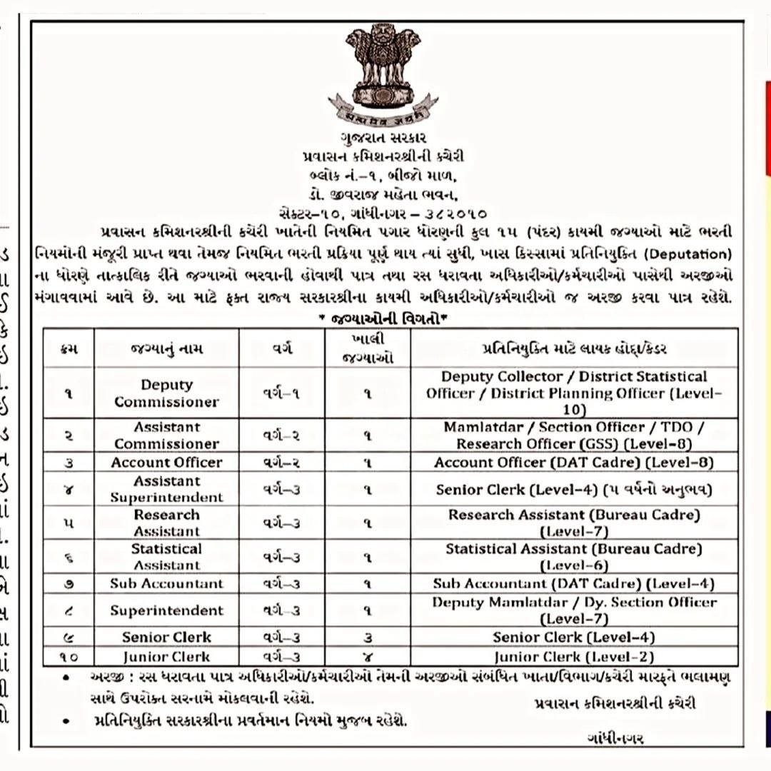 - Assistant Commissioner: Mamlatdar / Section Officer / TDO (Pay Level-8)